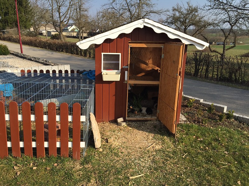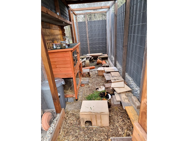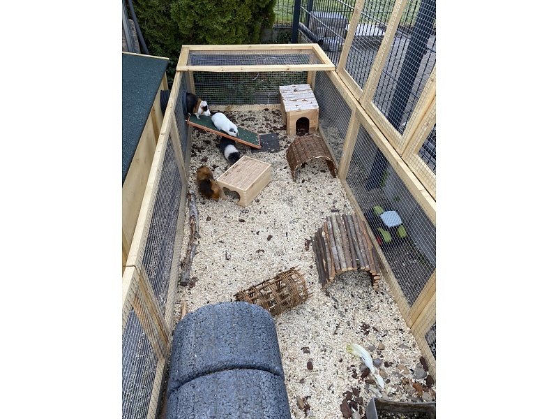Die Familien, die bei mir ihre Meeris gekauft haben, bauten tolle Innengehege, aber auch zum Teil spektakuläre Außenställe. Einige der Ideen präsentiere ich gern hier auf der Seite, damit sich jeder Anregungen holen kann, der das mag.